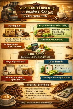 Di artikel ini kita bahas studi kasus laporan laba rugi roastery dengan angka realistis agar bisa jadi referensi praktis untuk pelaku usaha sangrai kopi.
