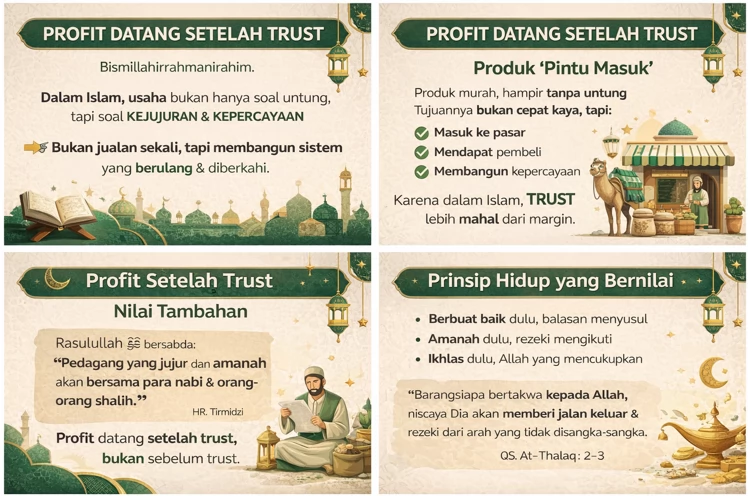 Dalam Islam, usaha bukan hanya soal untung, tapi soal kejujuran dan kepercayaan. Hari ini kita belajar satu prinsip penting: