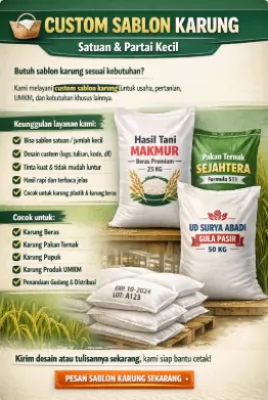 ๐Ÿงบ Custom Sablon Karung Partai Besar & Partai Kecil Jember Butuh sablon karung sesuai kebutuhan ? Kami melayani sablon karung custom untuk usaha, pertanian, UMKM, dan kebutuhan khusus lainnya. Keunggulan layanan kami: โœ… Bisa sablon ...