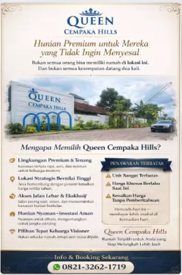 Hunian Premium untuk Mereka yang Tidak Ingin Menyesal Bukan semua orang bisa memiliki rumah di lokasi ini. Dan bukan semua kesempatan datang dua kali. โœจ Mengapa Memilih Ratu Cempaka Hills? ๐ŸŒฟ Lingkungan Premium & ...