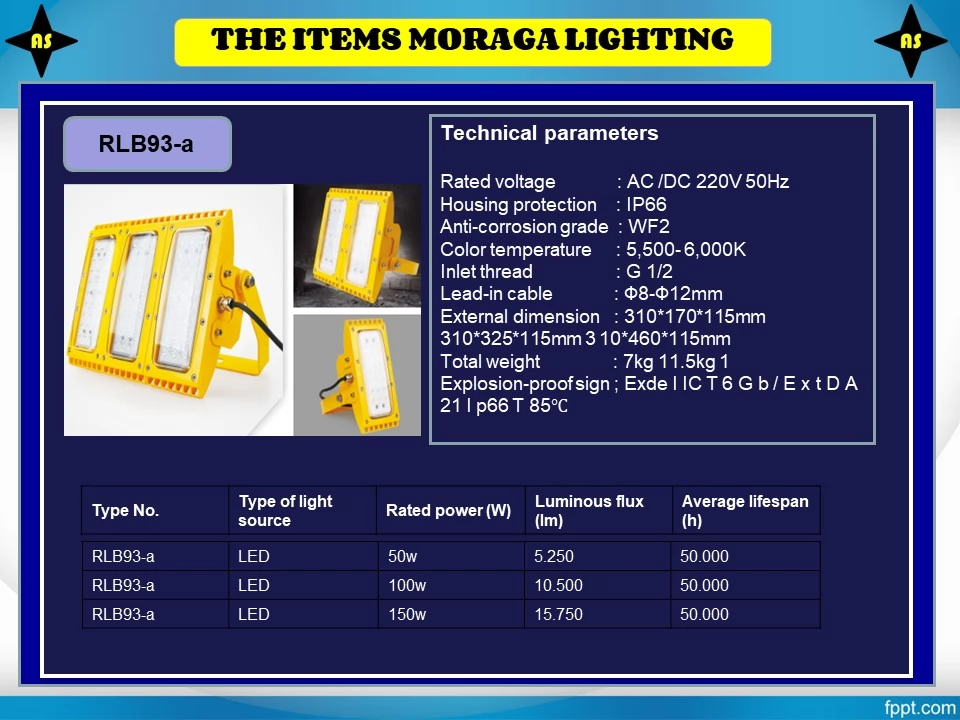 MORAGA RLB93-a LED Explosion Proof Flood Light adalah lampu sorot LED industri yang dirancang khusus untuk area berbahaya dan berisiko ledakan. Lampu ini telah memenuhi standar Explosion-Proof Exde IIC T6 Gb / Ex tD A21 IP66 T85°C, sehingga aman digunakan di lingkungan dengan gas, uap, dan debu mudah terbakar.