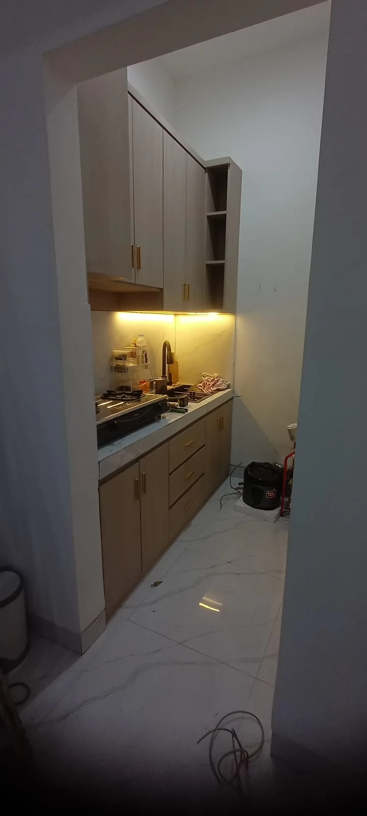 • Desain modern dengan pencahayaan elegan, memaksimalkan ruang dan kenyamanan dapur Anda