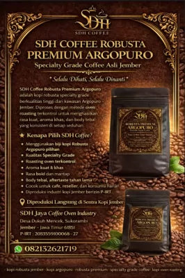 SDH Coffee Robusta Premium Argopuro adalah kopi robusta specialty grade pilihan yang diproduksi langsung oleh SDH Jaya Coffee Oven Industry di Jember, Jawa Timur. Menggunakan biji kopi robusta Argopuro berkualitas, diproses dengan ...